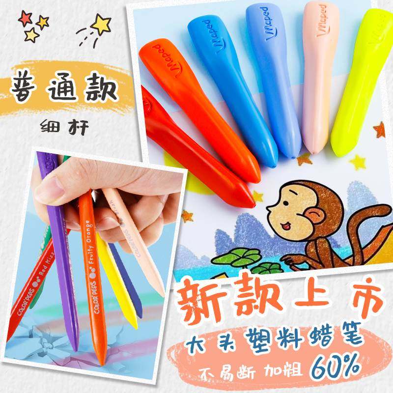马培德塑料蜡笔不脏手不粘手儿童婴儿不沾手画画油画棒安全无毒可