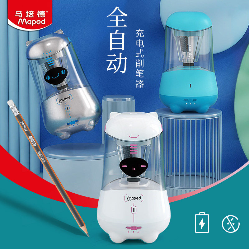 法国马培德全自动削笔机 电动转笔刀小学生铅笔削笔器儿童用卷笔刀可充电款学习用品三挡可调