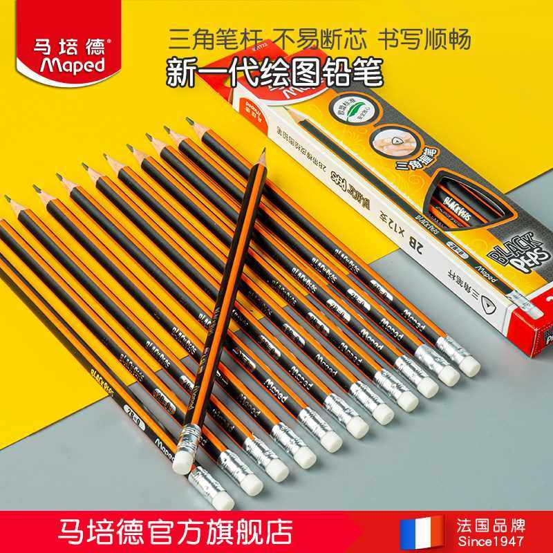法国马培德带橡皮绘图铅笔三角正姿写字考试专用2B铅笔学生幼儿园