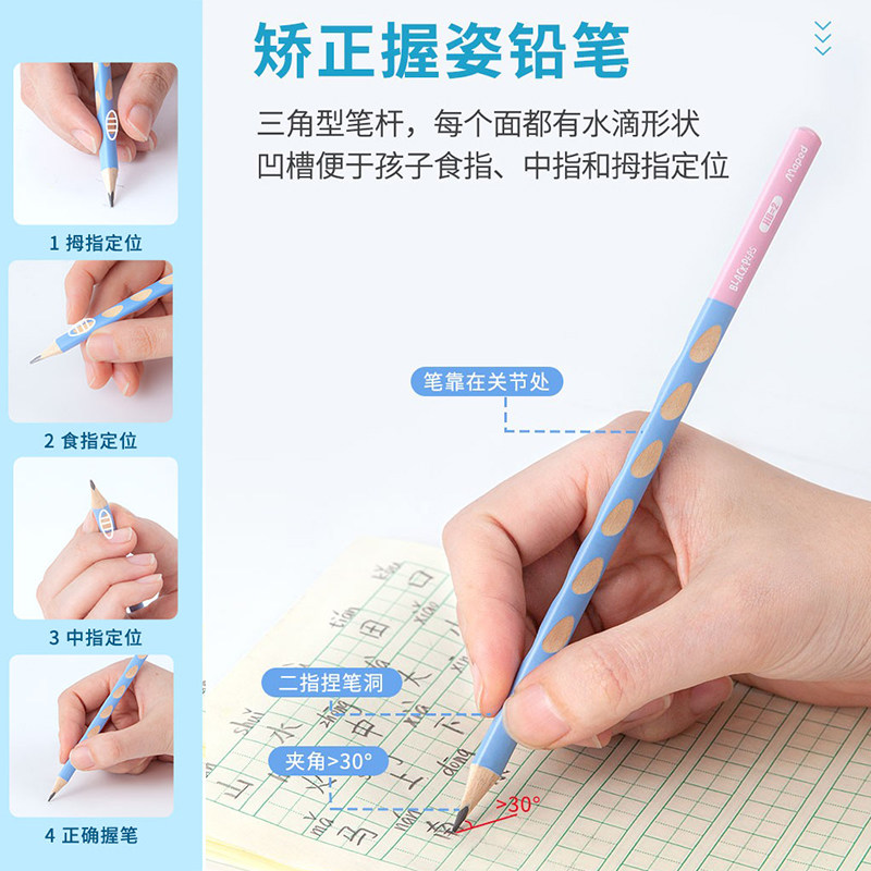 法国马培德洞洞铅笔小学生一年级专用30支50支桶装hb书写2b儿童矫正握姿幼儿园初学者三角杆儿童写字练字笔