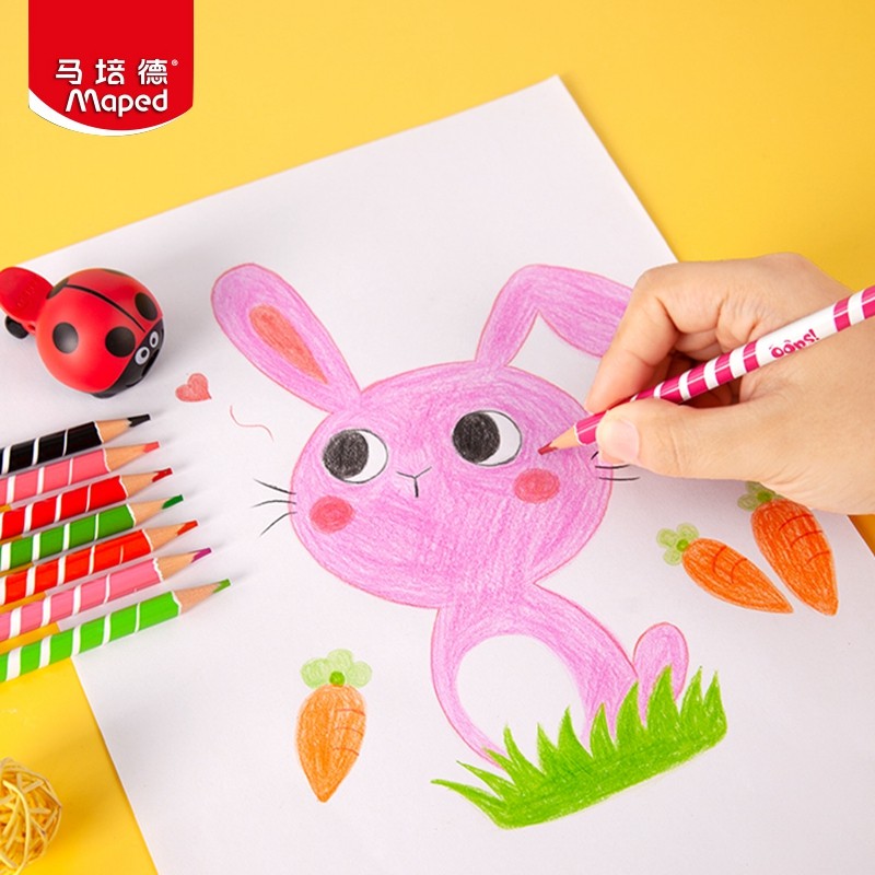法国马培德粗杆彩铅幼儿园儿童大头油性彩色铅笔三角易抓握maped