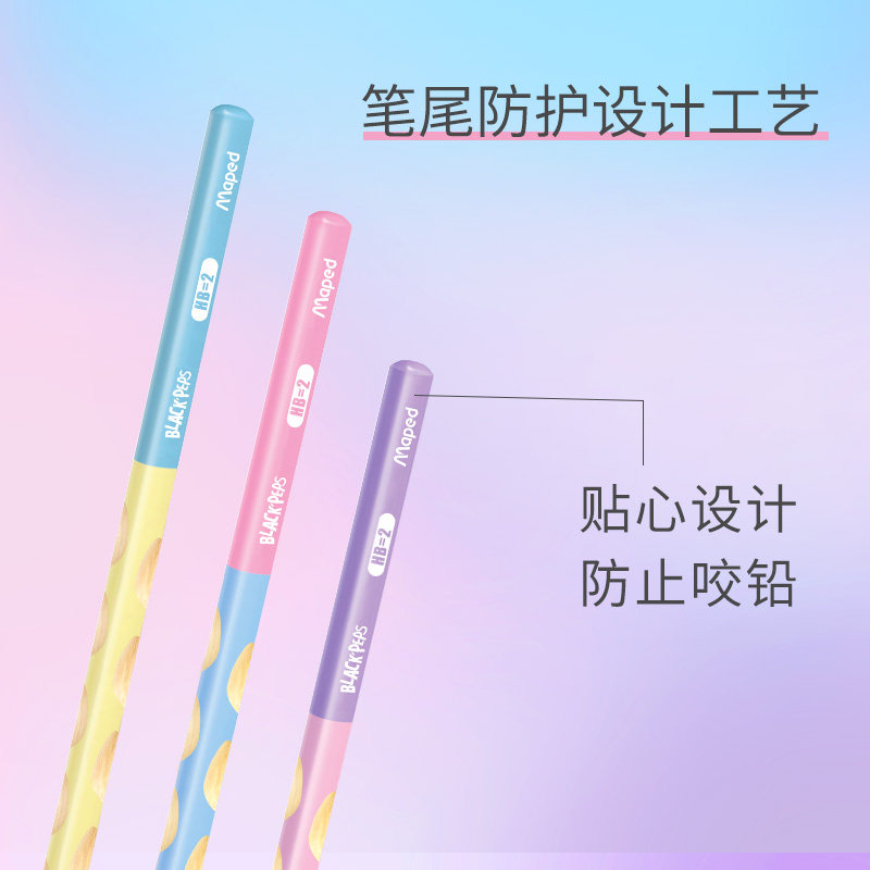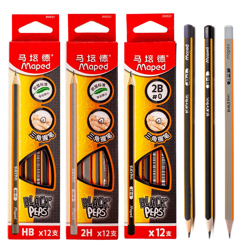 法国品牌MAPED马培德三角杆铅笔2H HB 2B三角形笔杆学生 易削防断