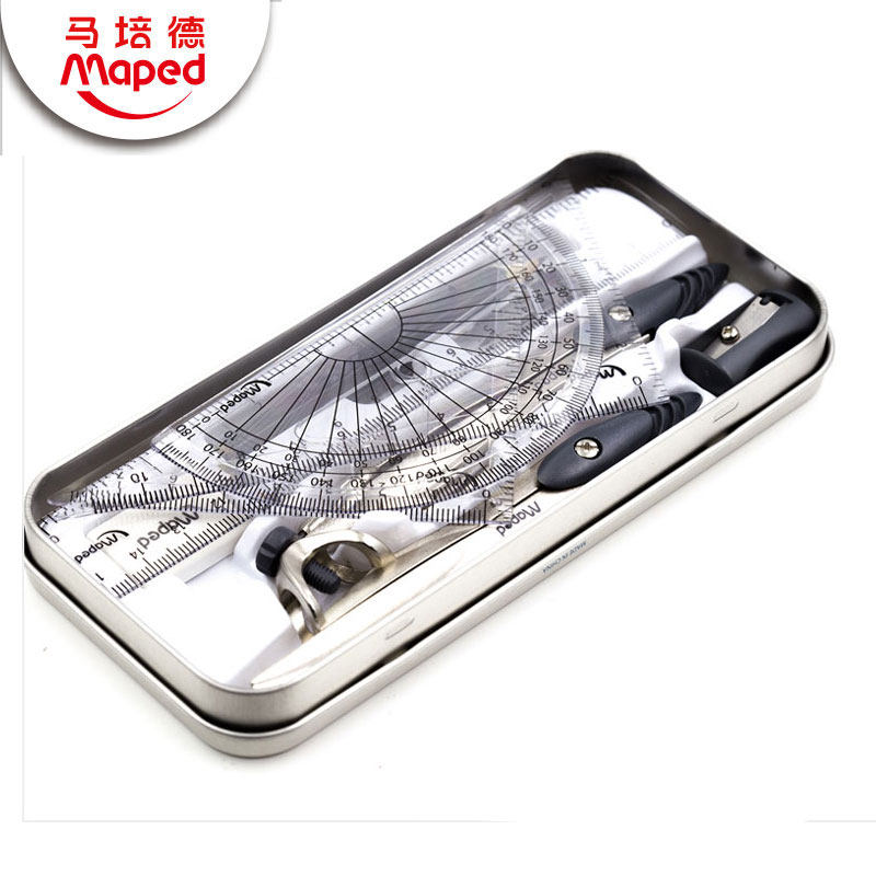 Maped马培德圆规十件套装金属不锈钢多功能制图套尺中小学生用考试三角尺绘图工具直尺子替换笔芯可夹铅笔