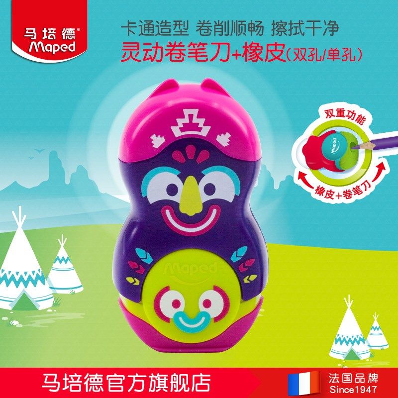 马培德灵动双孔转笔刀 小学生双孔可卷粗杆铅笔橡皮卷笔刀两用创