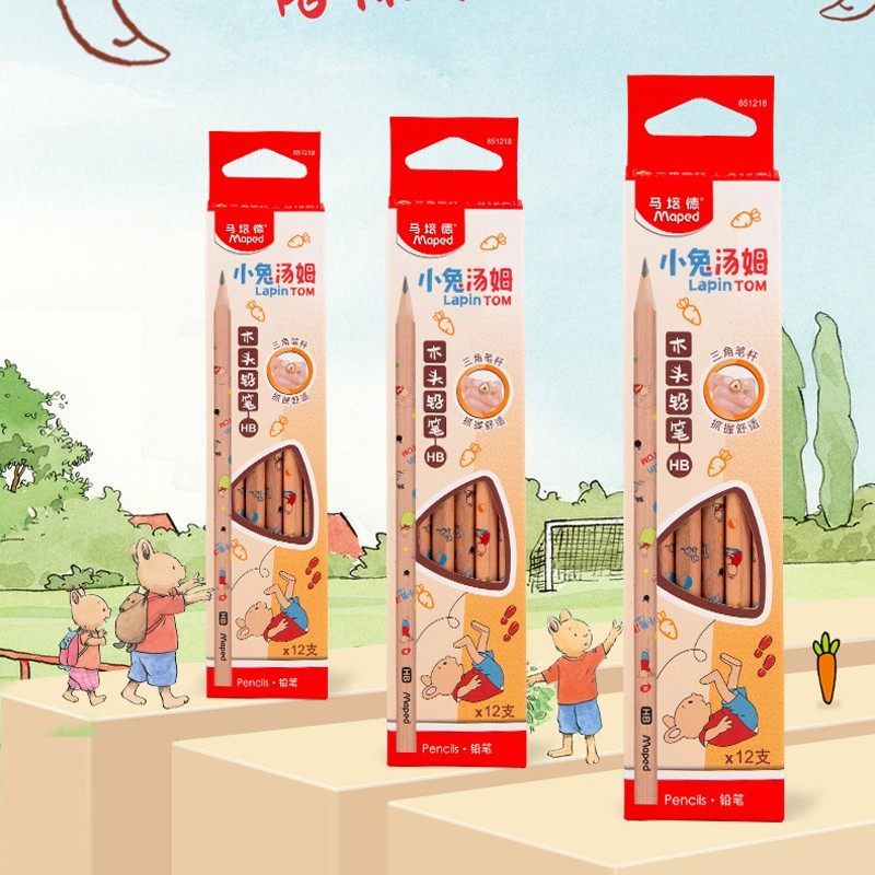 马培德851218CH小兔汤姆原木铅笔HB小学生用书写笔三角正姿笔杆