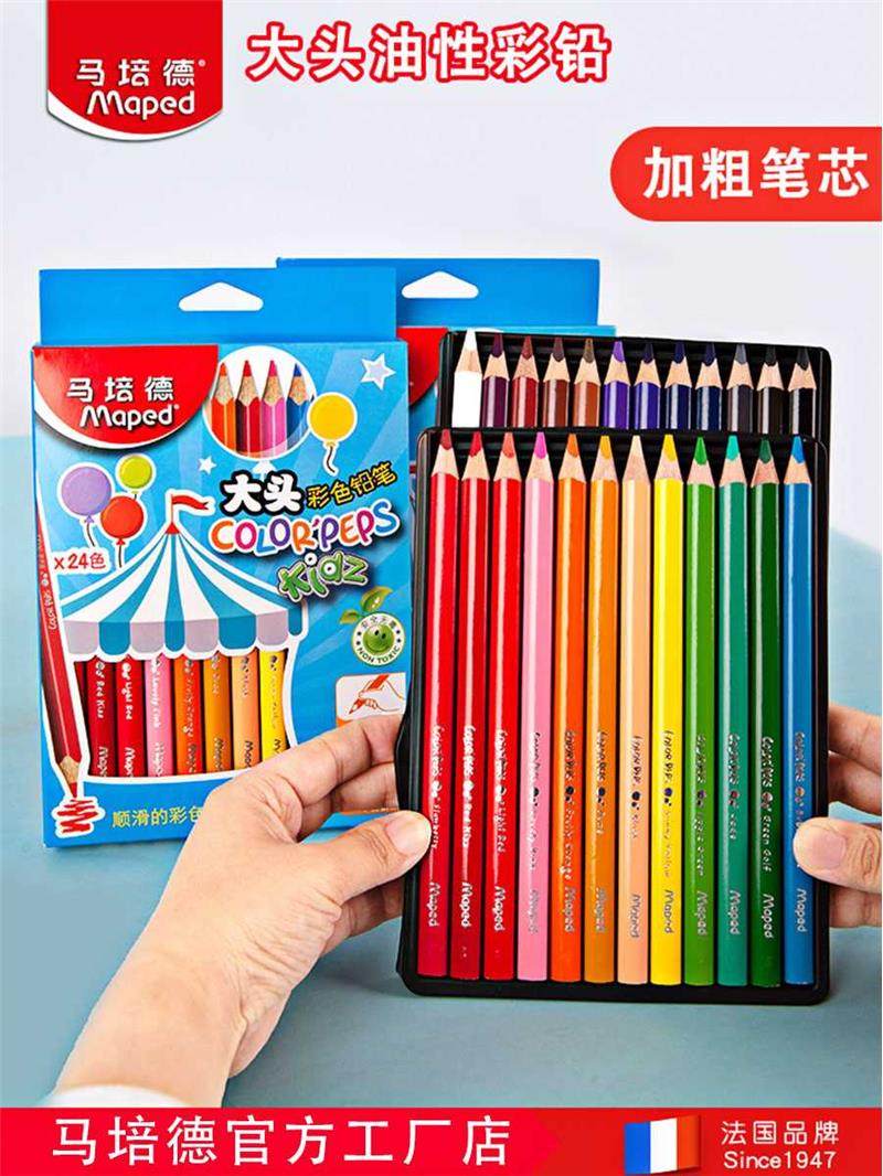 马培德彩色铅笔儿童粗杆油性彩铅24色幼儿园专用加粗三角杆画画笔