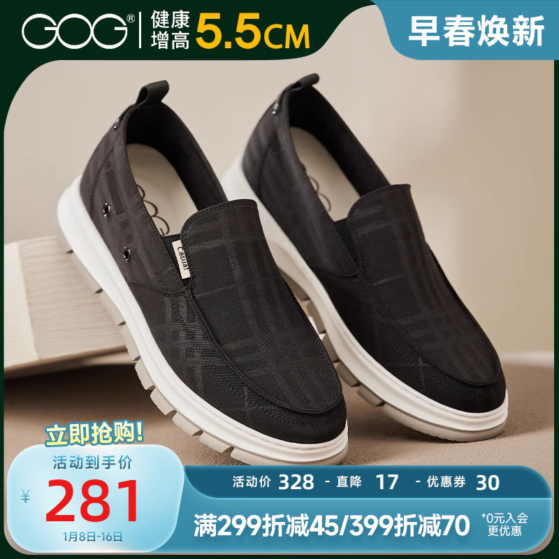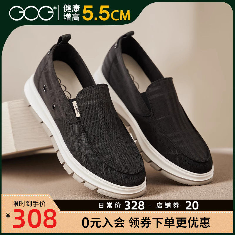高哥内增高布鞋2024春季新款男鞋舒适一脚蹬休闲鞋男士薄款布鞋