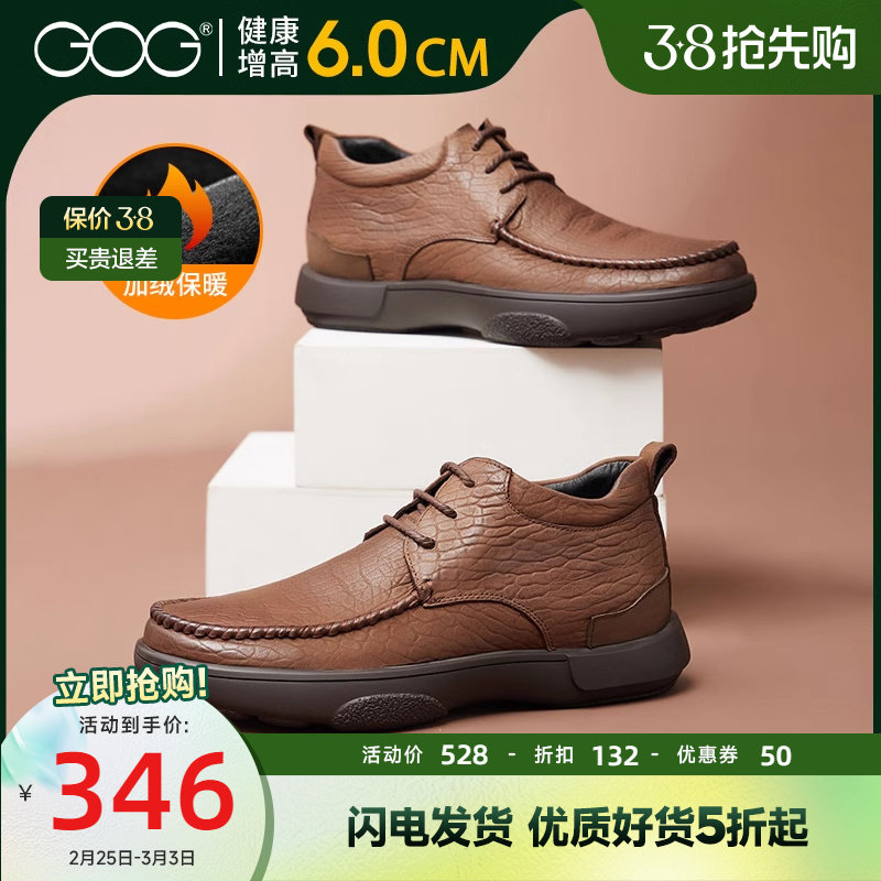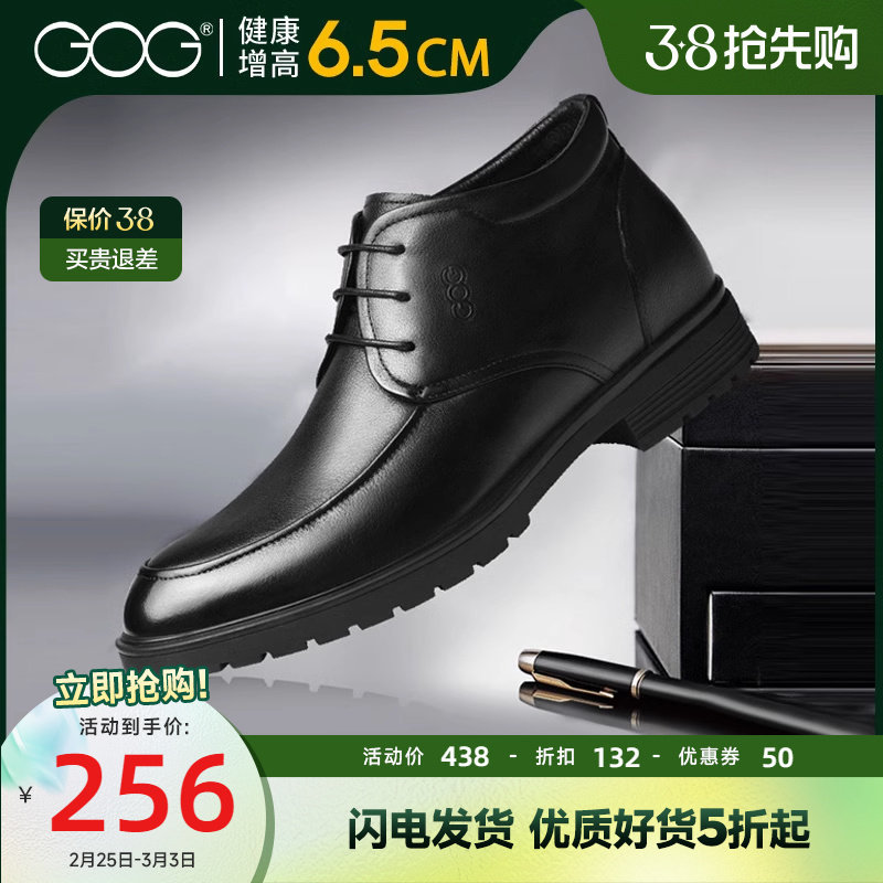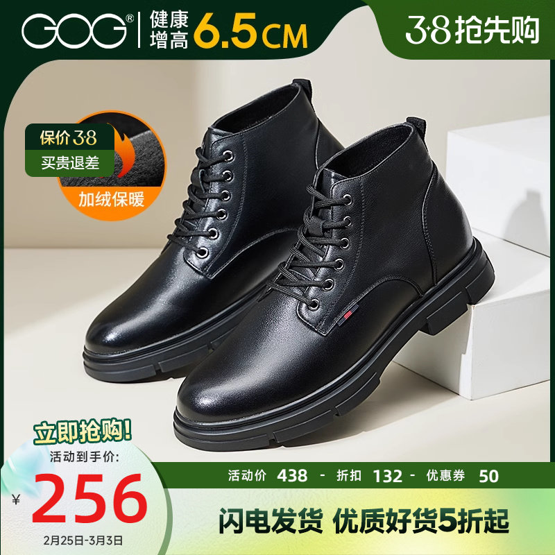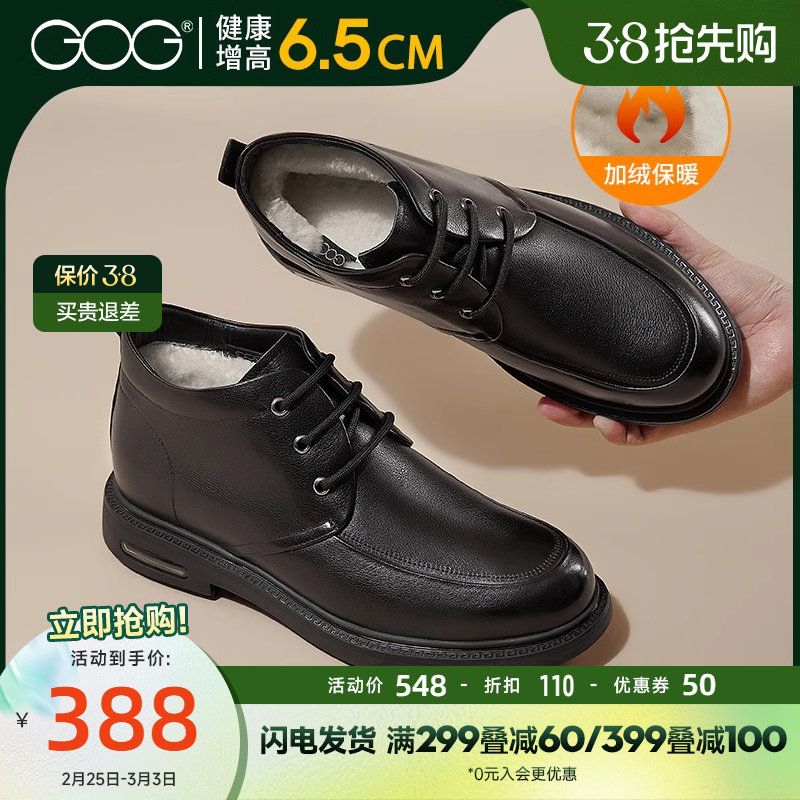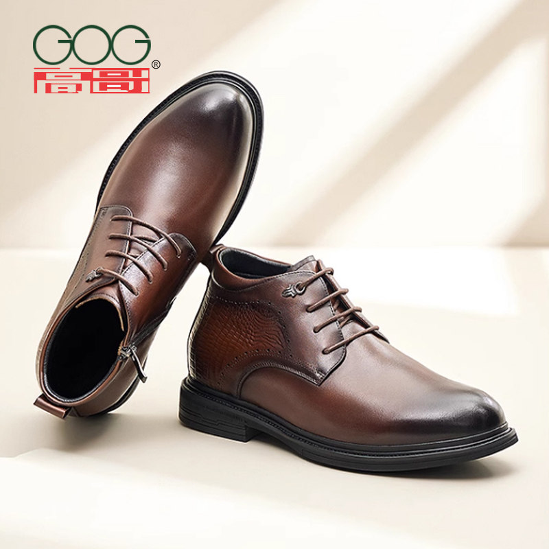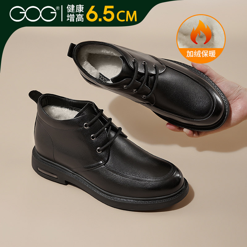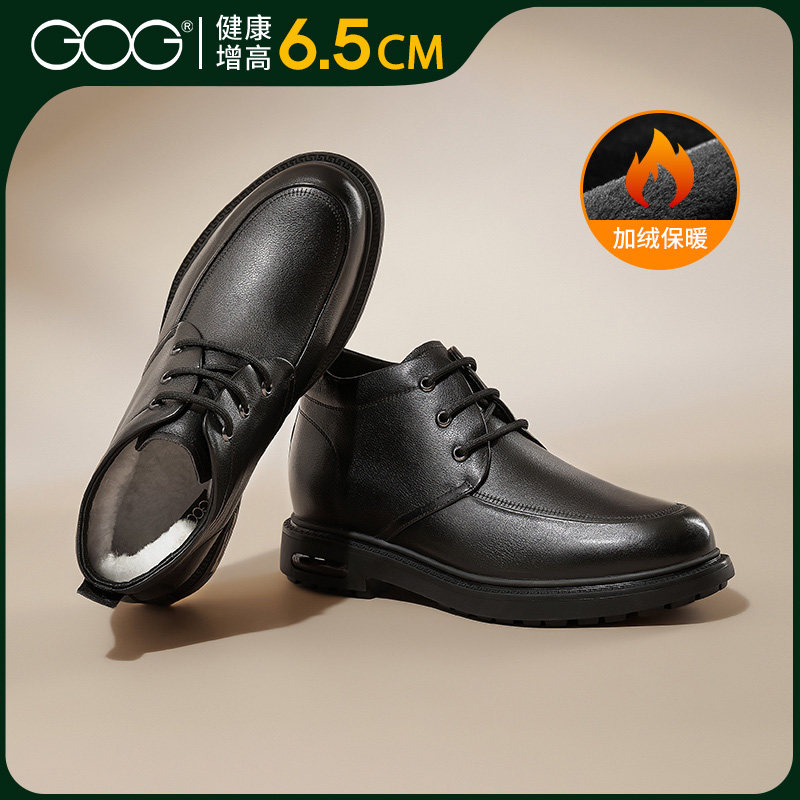 高哥增高鞋男鞋商务正装皮靴春季加绒保暖棉鞋头层牛皮内增高靴子