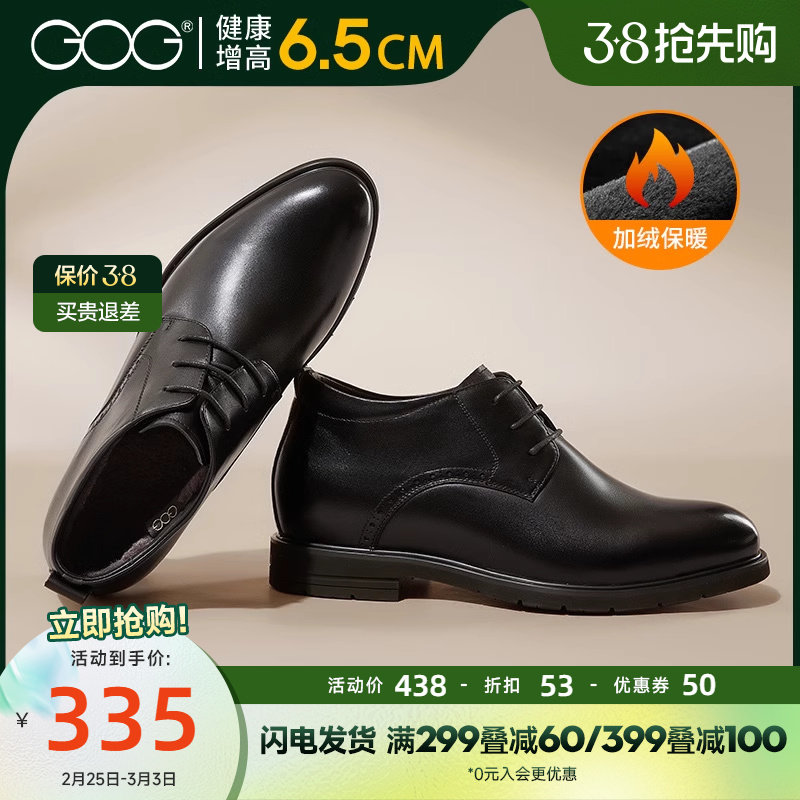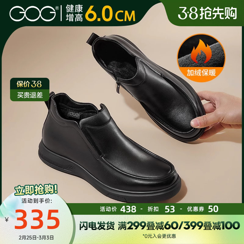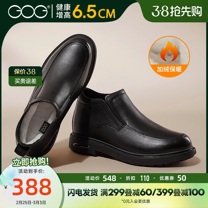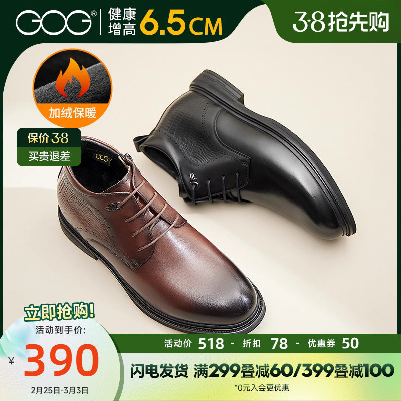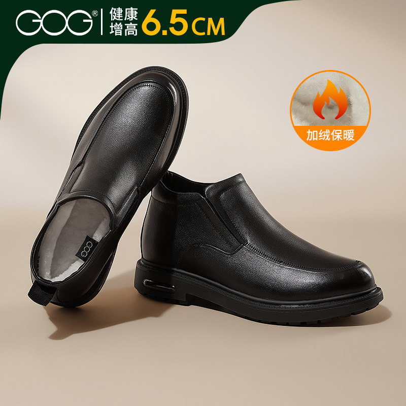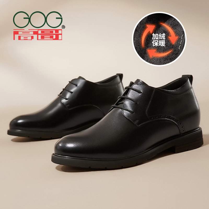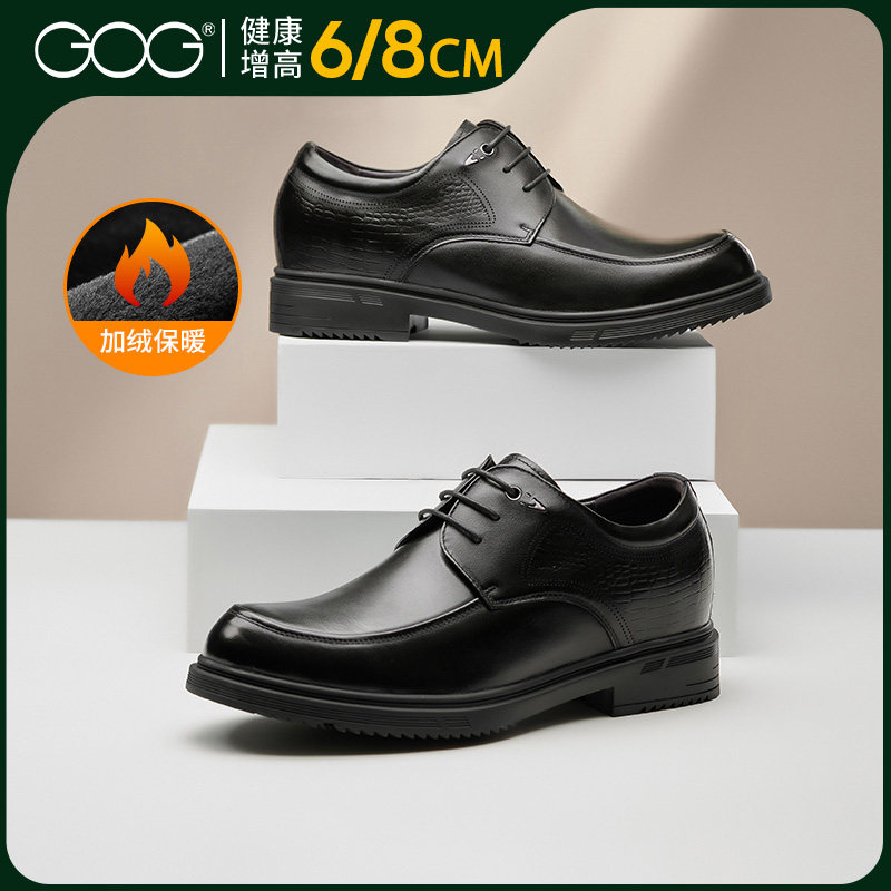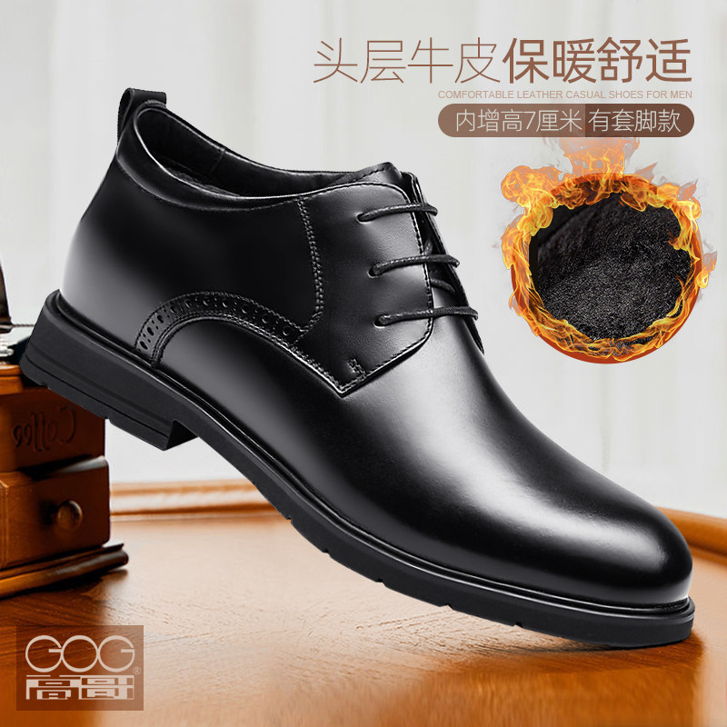 高哥增高皮鞋男8cm春季加绒保暖棉鞋商务正装真皮鞋子内增高男鞋