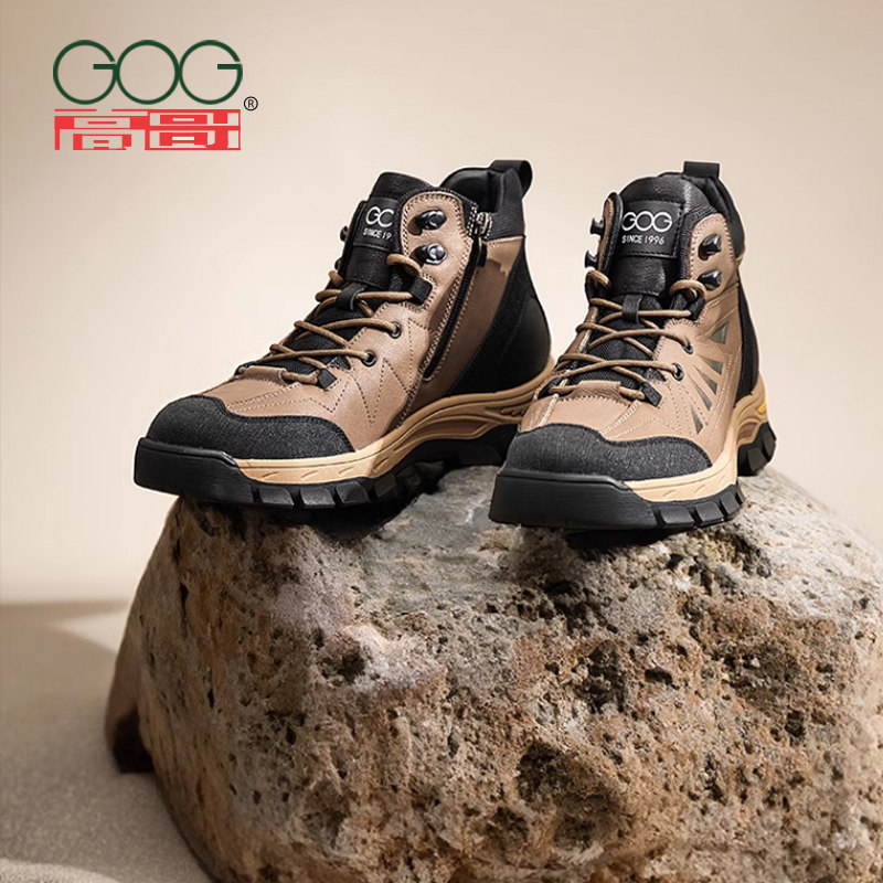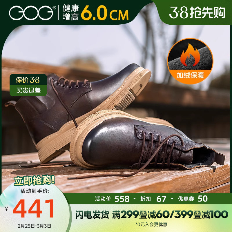 高哥增高工装靴男士秋冬新款棉鞋潮流休闲真皮靴子隐形内增高男鞋