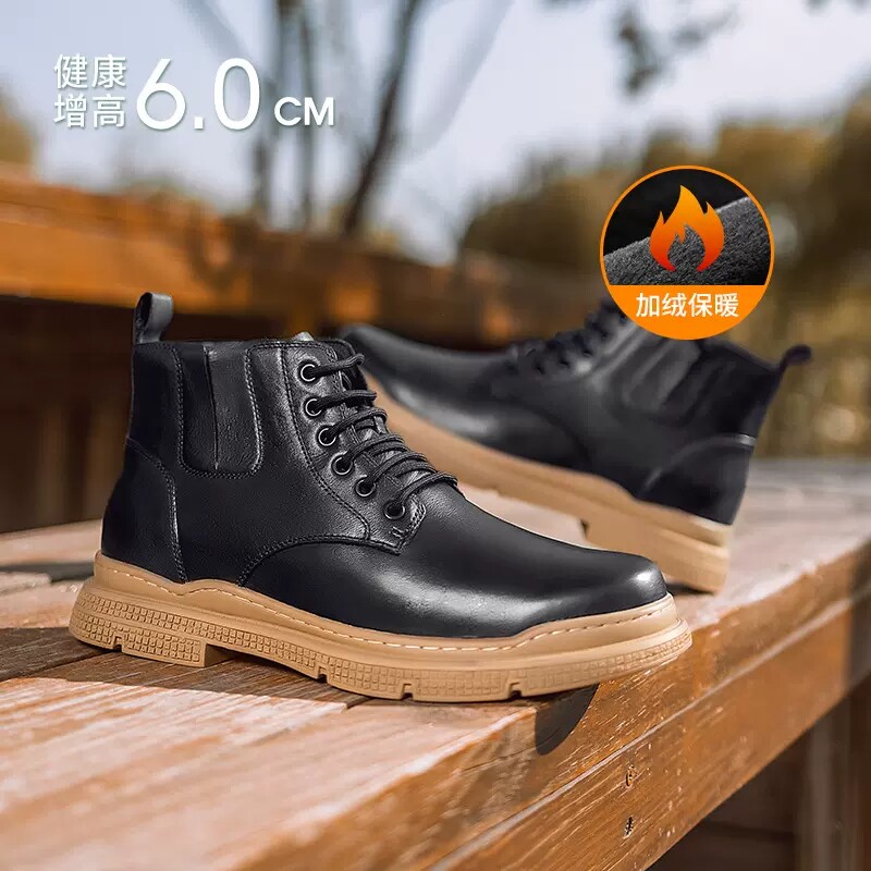 高哥增高鞋冬季男款内增高鞋加绒棉鞋马丁靴男士休闲鞋子2023新款