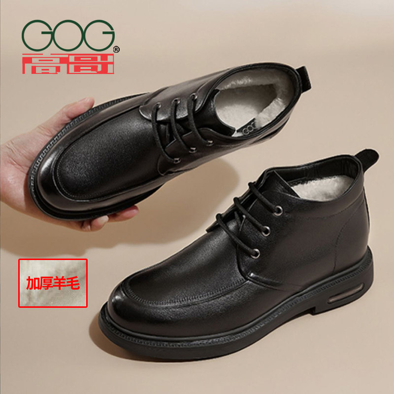 高哥男士内增高皮鞋加绒纯羊毛加厚棉鞋冬季保暖皮靴增高男鞋6cm