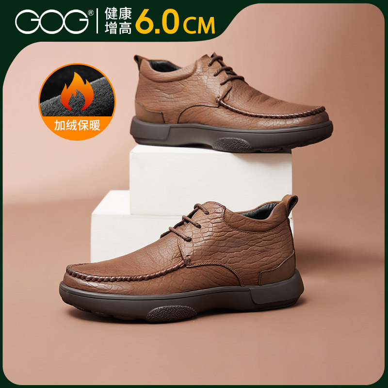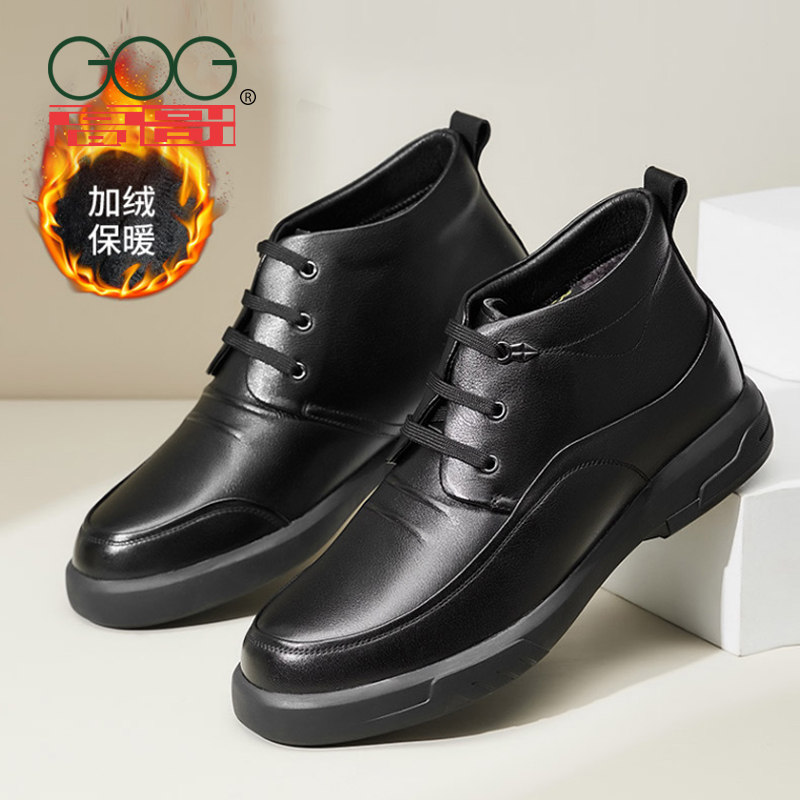 高哥增高鞋男士休闲皮鞋男冬季加绒保暖棉鞋男真皮靴子内增高男鞋
