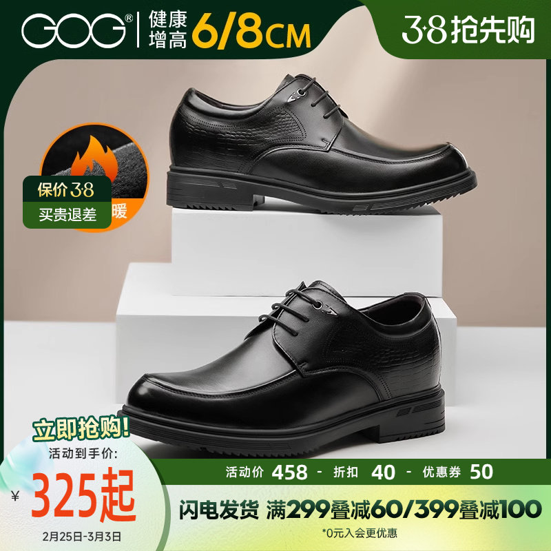 高哥增高鞋男8cm春季新款商务男鞋正装真皮棉鞋加绒内增高皮鞋