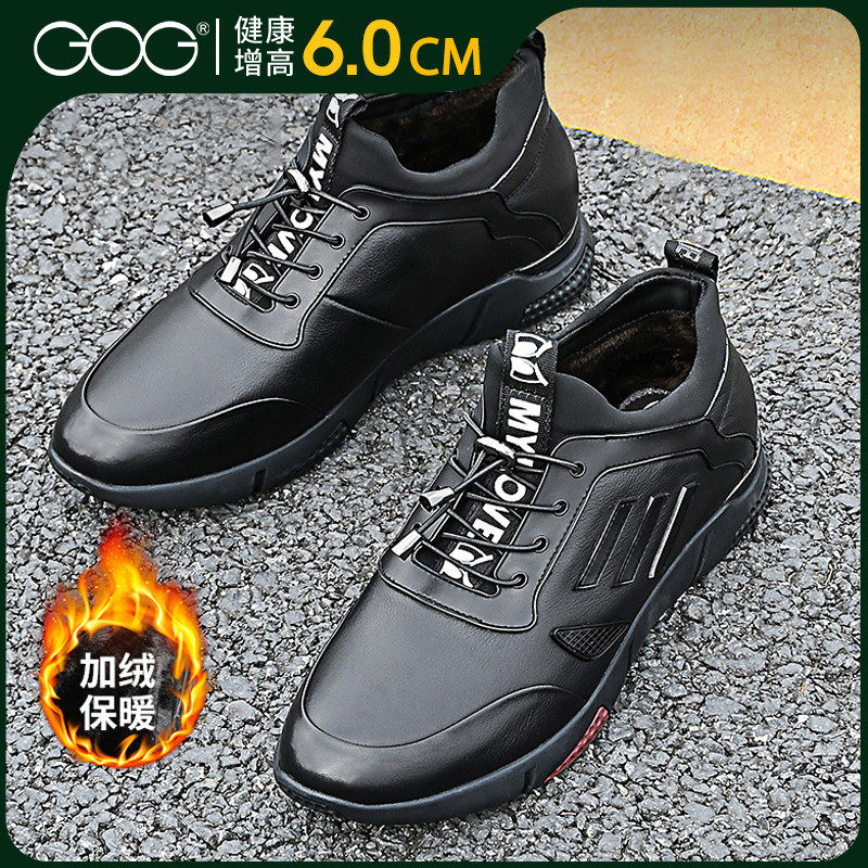 高哥休闲增高鞋冬季新款加绒真皮男鞋运动鞋软面短靴棉鞋内增高鞋