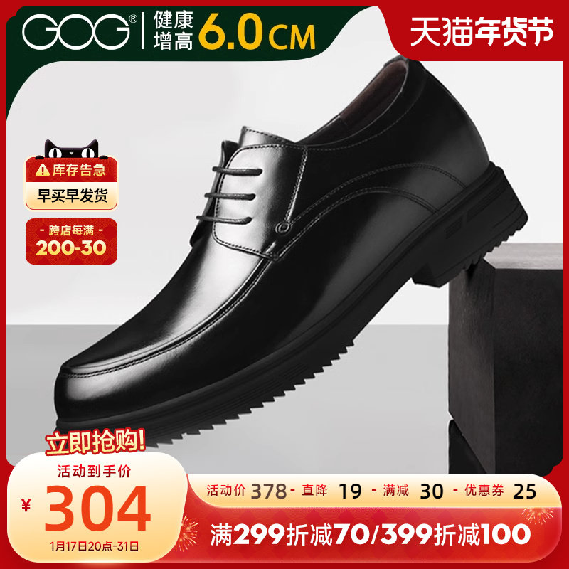高哥隐形增高皮鞋商务通勤鞋秋冬新款男士正装鞋真皮结婚新郎男鞋