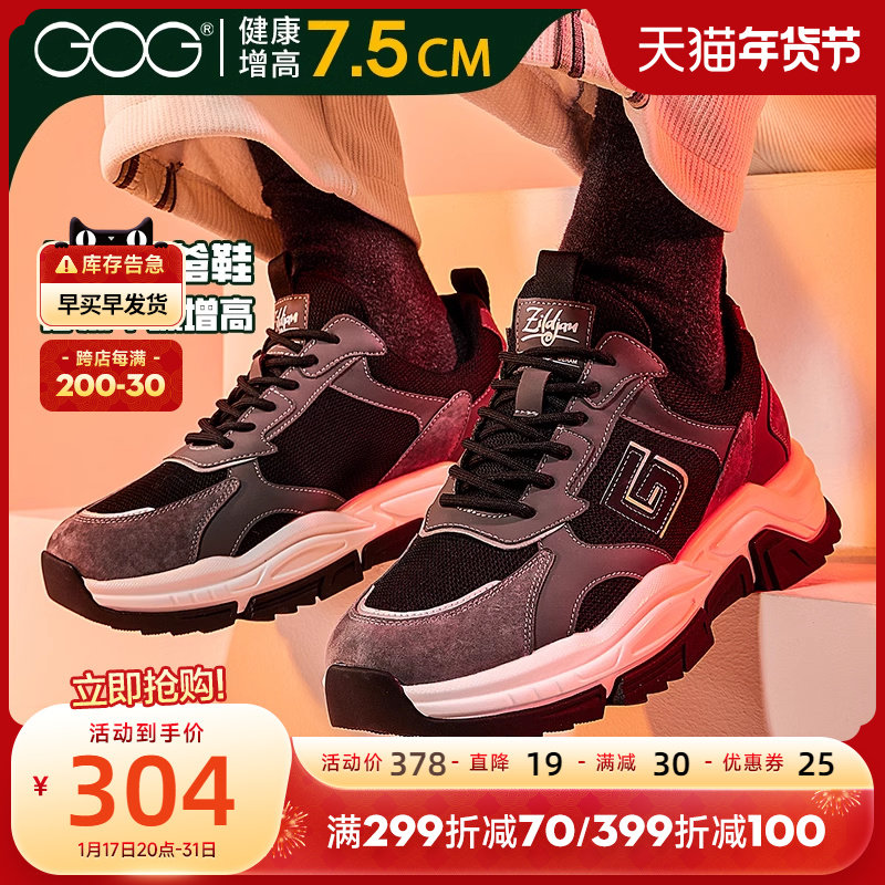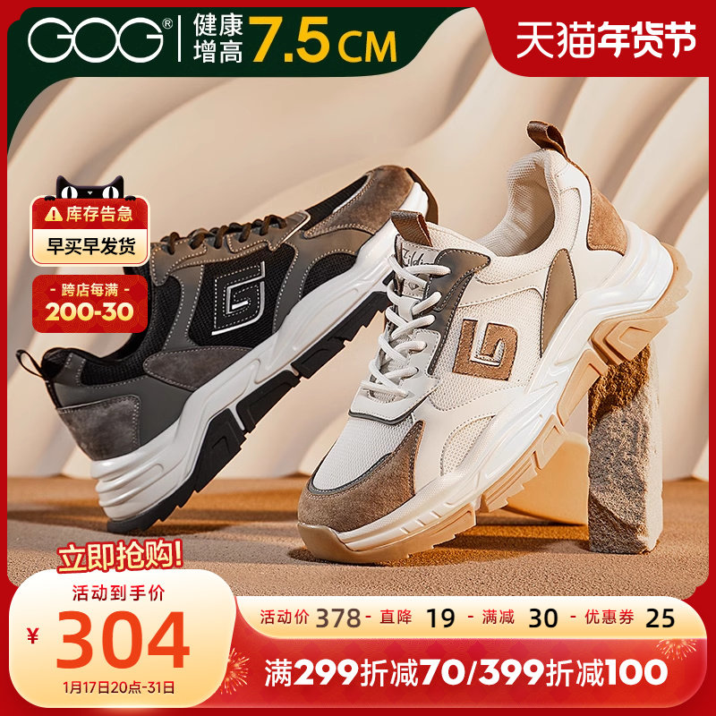 高哥男士内增高休闲鞋2024春季新款男鞋时尚运动鞋学生厚底老爹鞋