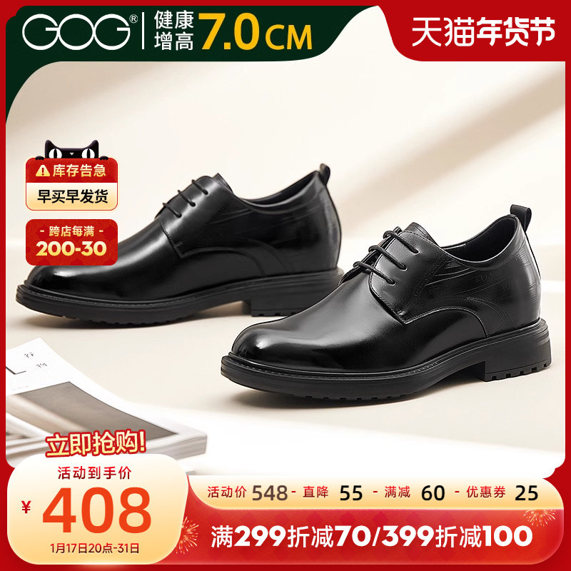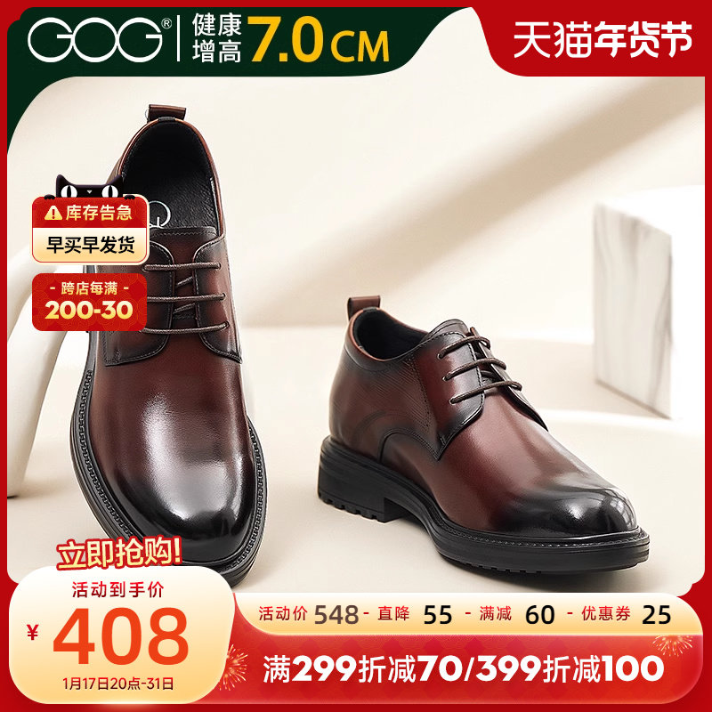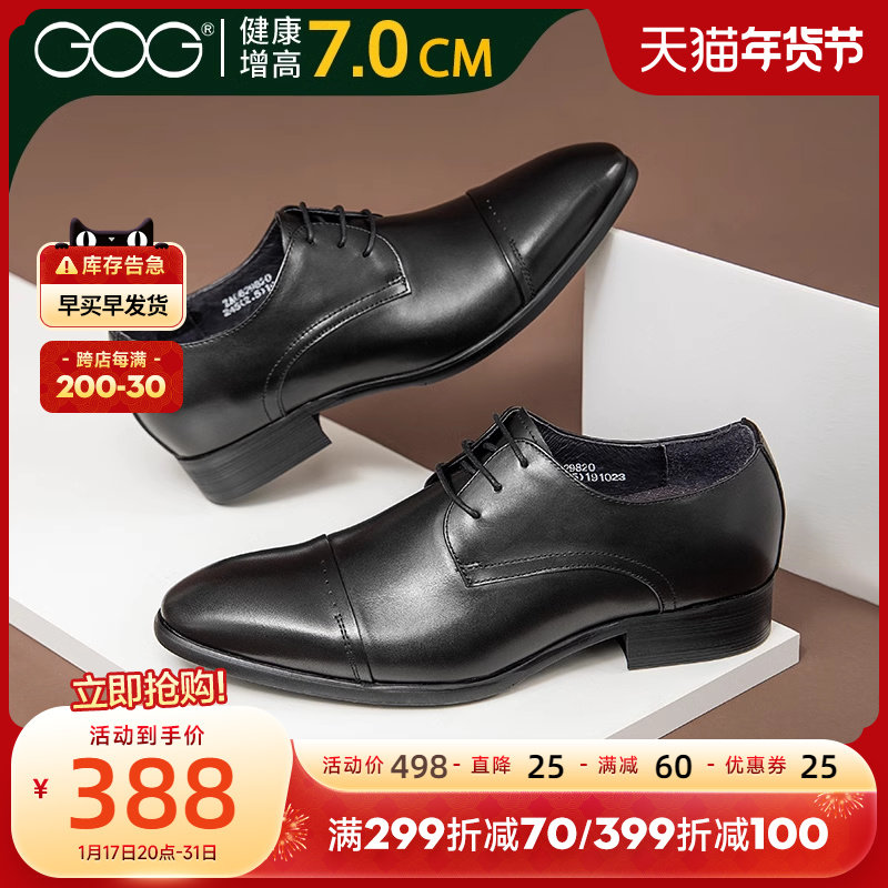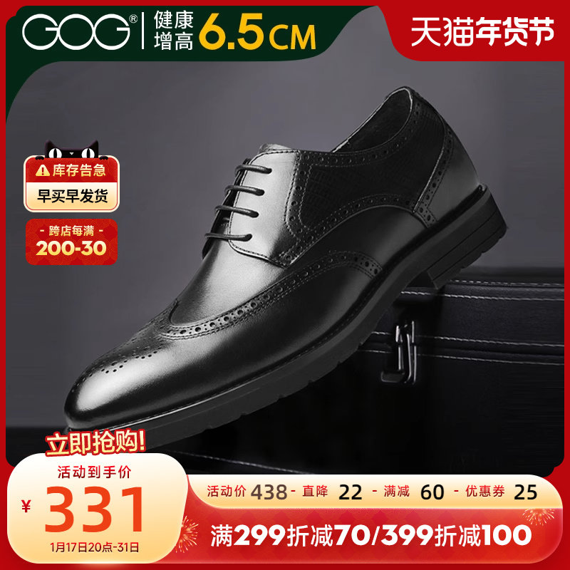 高哥增高皮鞋秋季新款英伦布洛克商务男鞋真皮时尚正装内增高鞋子