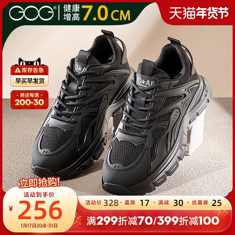 高哥运动鞋男2024春季新款厚底老爹鞋潮轻质休闲鞋隐形内增高男鞋