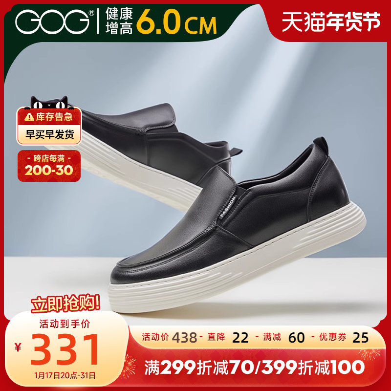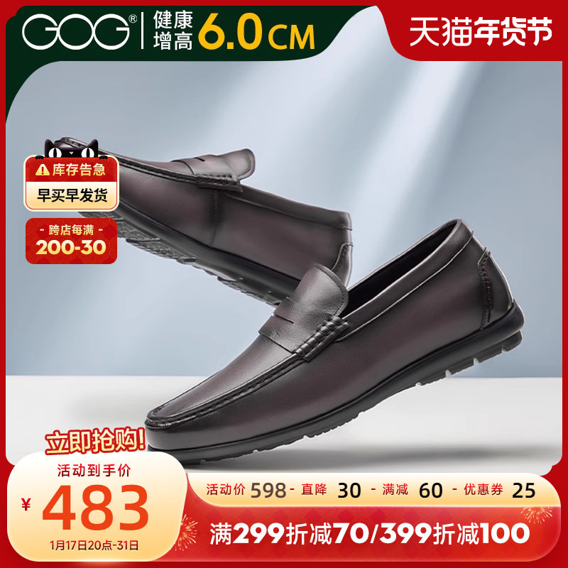 高哥内增高鞋男2024春季新款男鞋轻质一脚蹬驾车鞋男士增高皮鞋