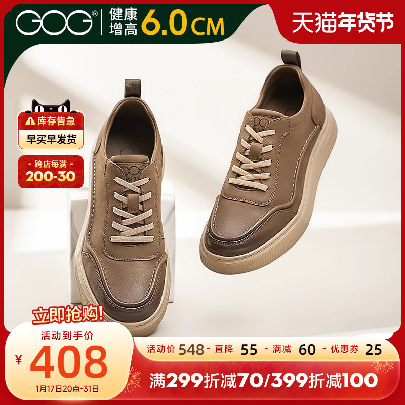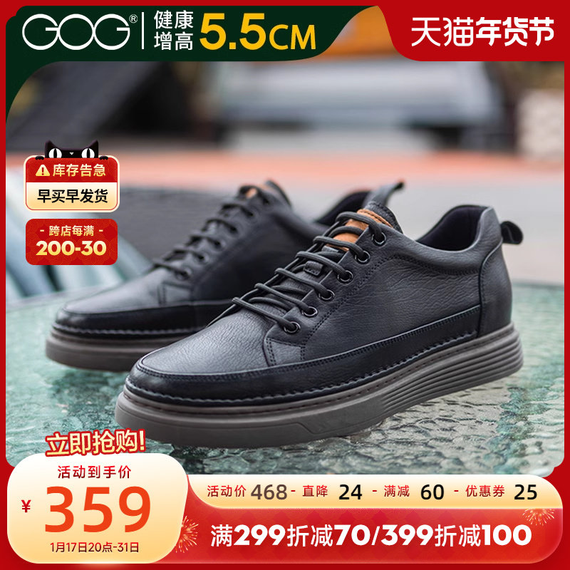 高哥隐形增高板鞋男2024春季新款时尚男鞋潮流百搭真皮休闲鞋子