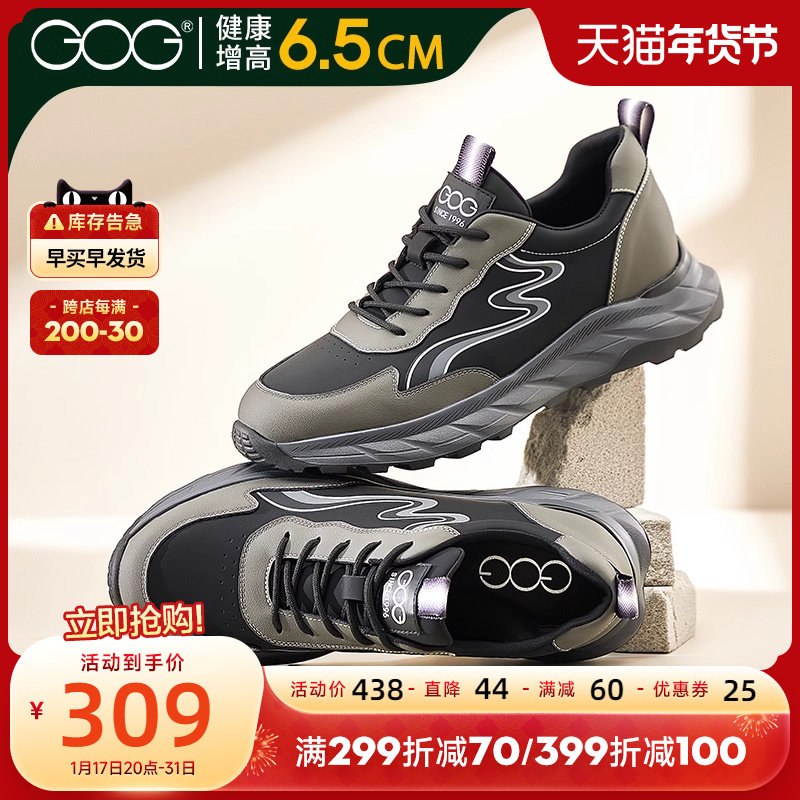 高哥增高鞋男6cm秋季休闲跑步鞋舒适减震耐磨超轻内增高运动男鞋