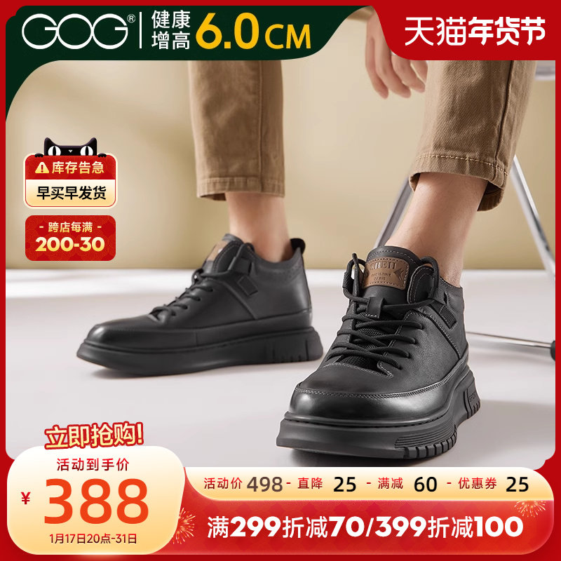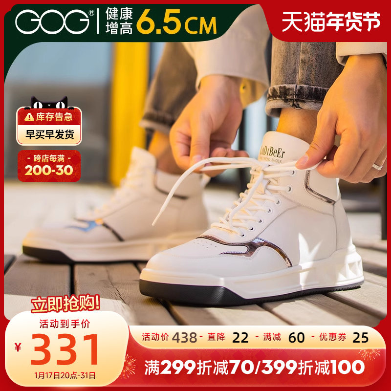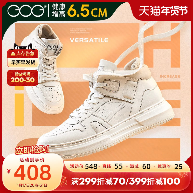 高哥增高男鞋真皮运动鞋2024春季新款高帮鞋子男士内增高休闲板鞋