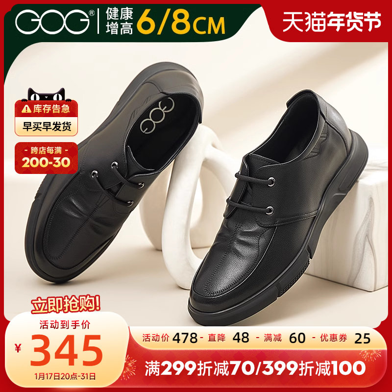 高哥增高鞋男6cm冬季新款内增高休闲皮鞋男士真皮商务加绒男鞋8cm
