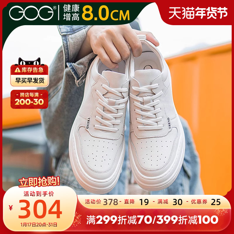 高哥增高男鞋8cm秋冬时尚休闲鞋百搭小白鞋男隐形内增高真皮板鞋
