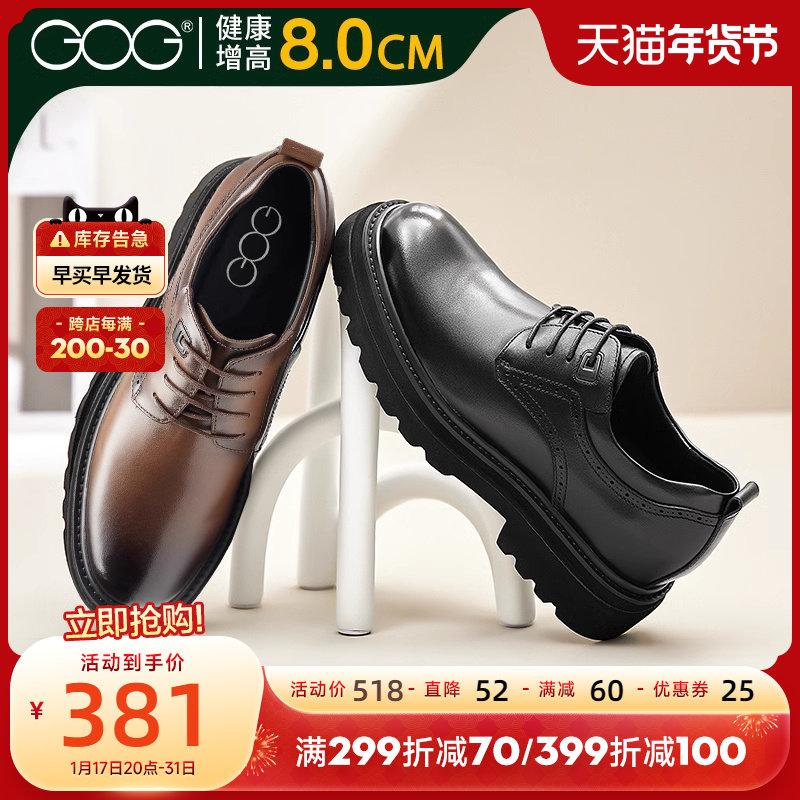 高哥增高皮鞋男8cm德比鞋2024春季新款商务正装鞋隐形内增高男鞋