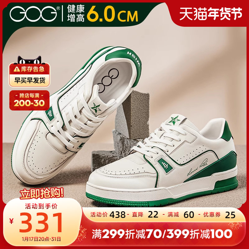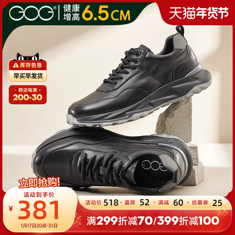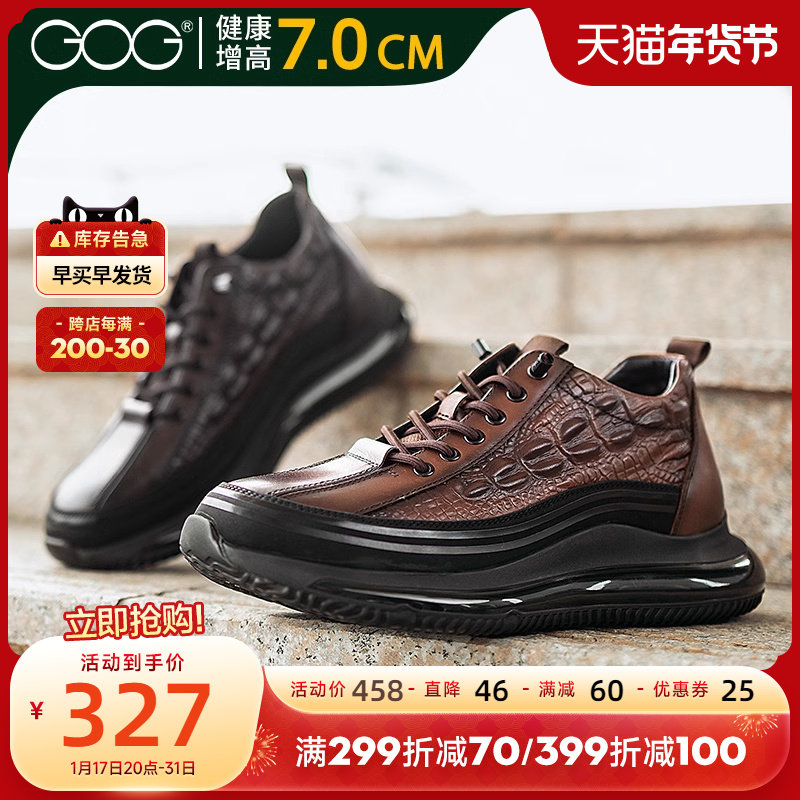 高哥内增高休闲鞋2024春季新款男鞋爆米花底减震真皮运动鞋男士