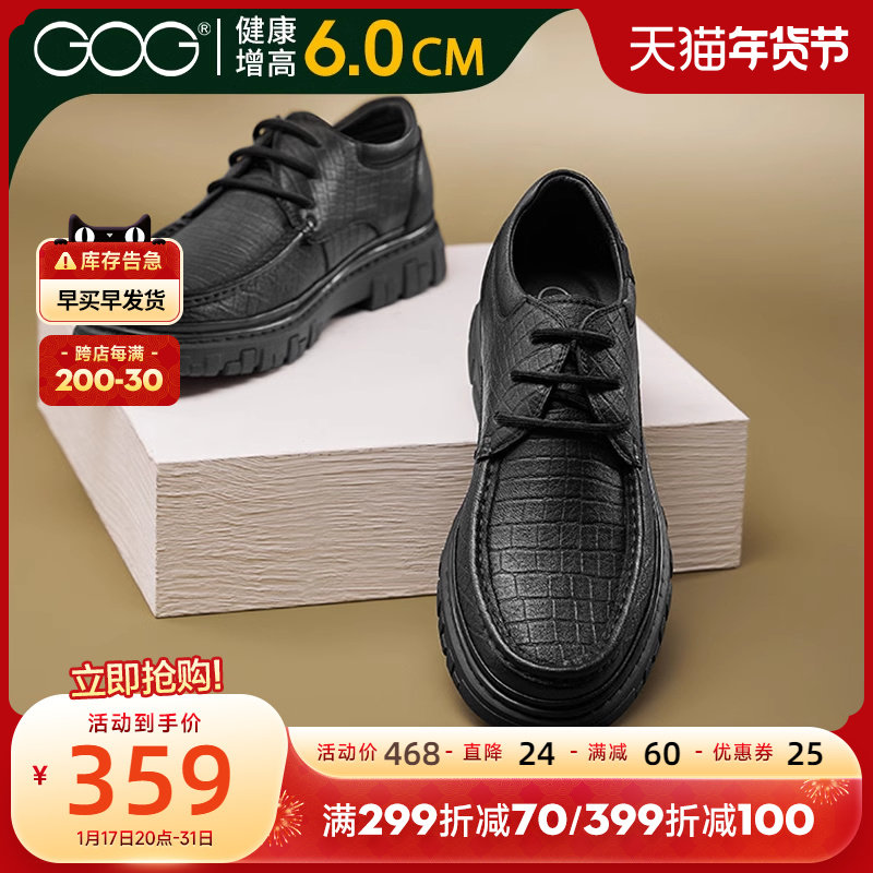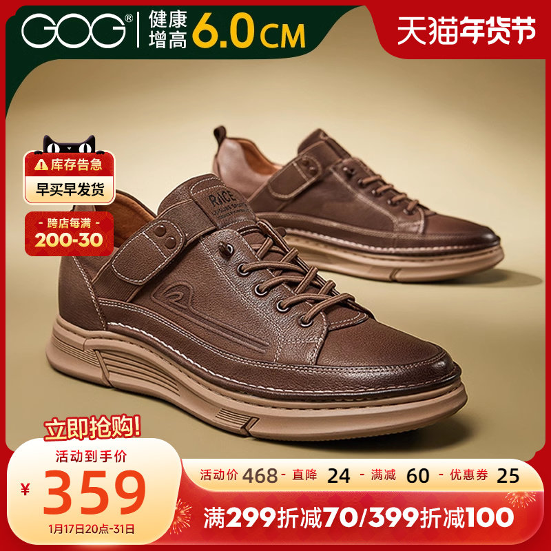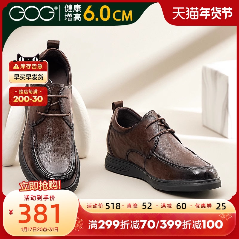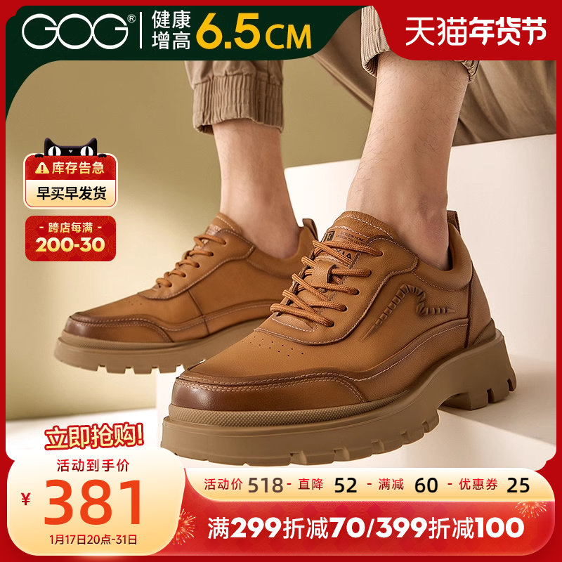 高哥隐形增高鞋男英伦风真皮男鞋软底软面爸爸鞋内增高休闲皮鞋