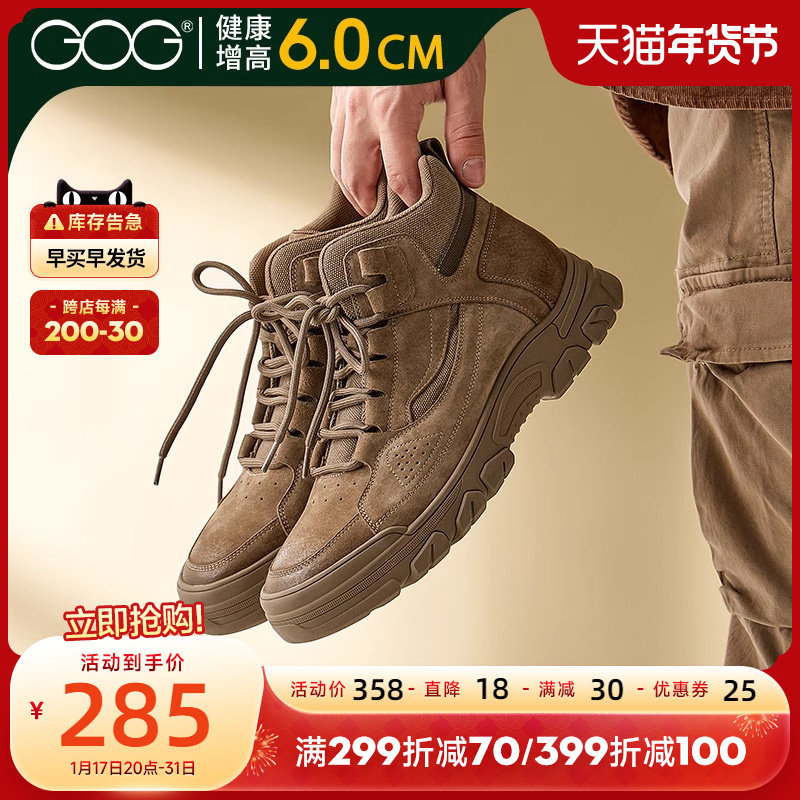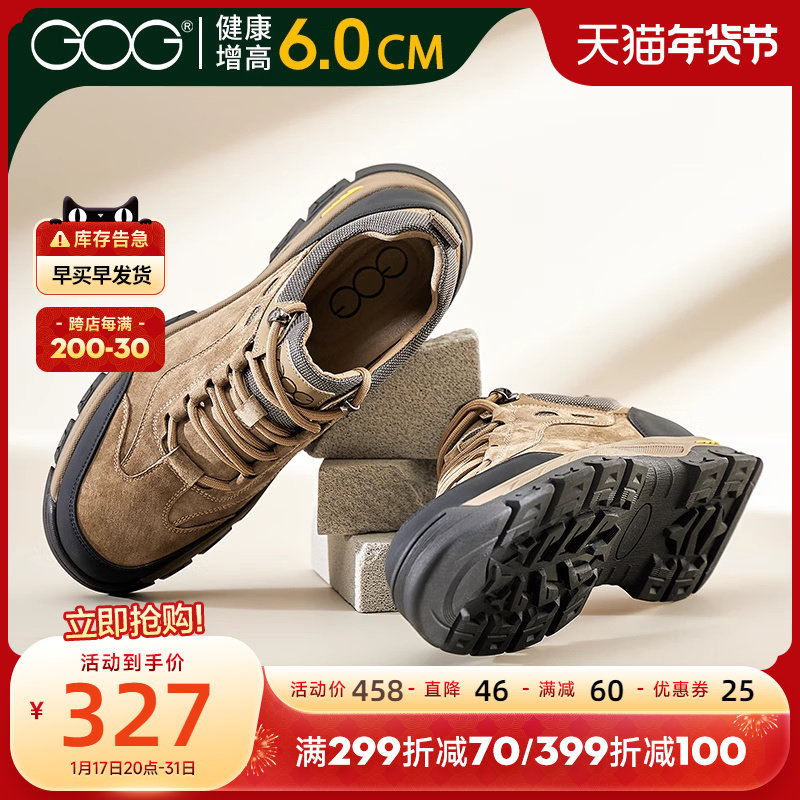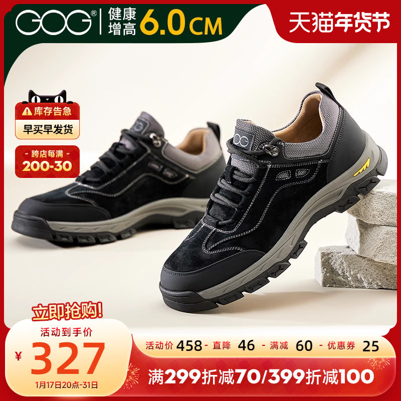 高哥增高鞋男士新款登山鞋秋冬徒步鞋子户外工装男鞋内增高运动鞋