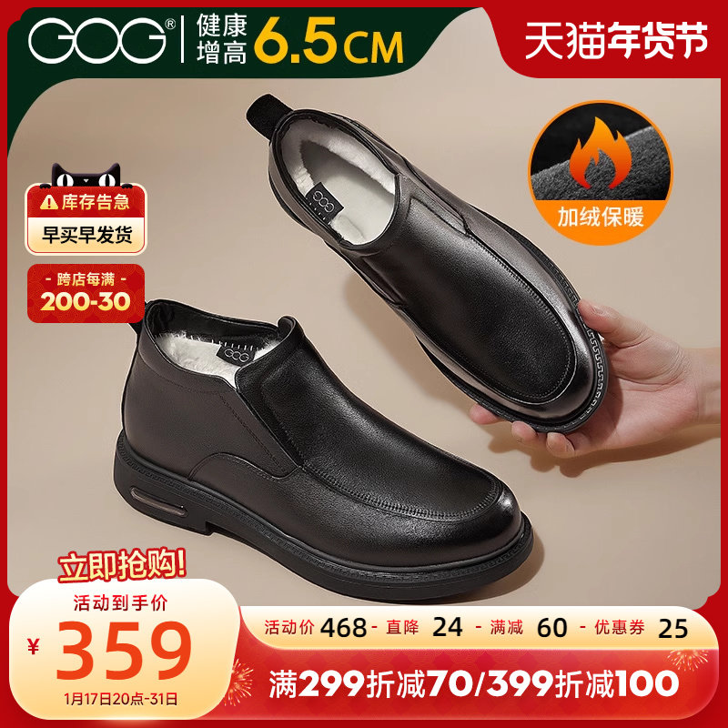 高哥增高鞋男鞋商务正装皮靴冬季加绒保暖棉鞋头层牛皮内增高靴子