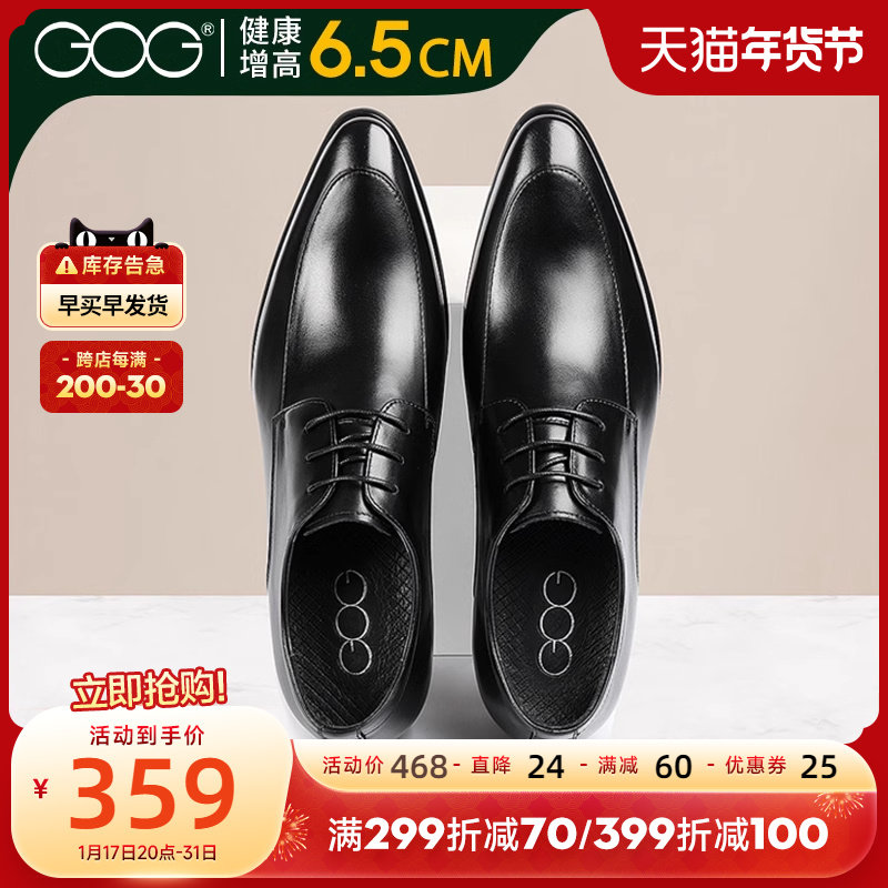 高哥增高鞋男新款真皮男鞋子商务尖头新郎婚鞋男士内增高正装皮鞋