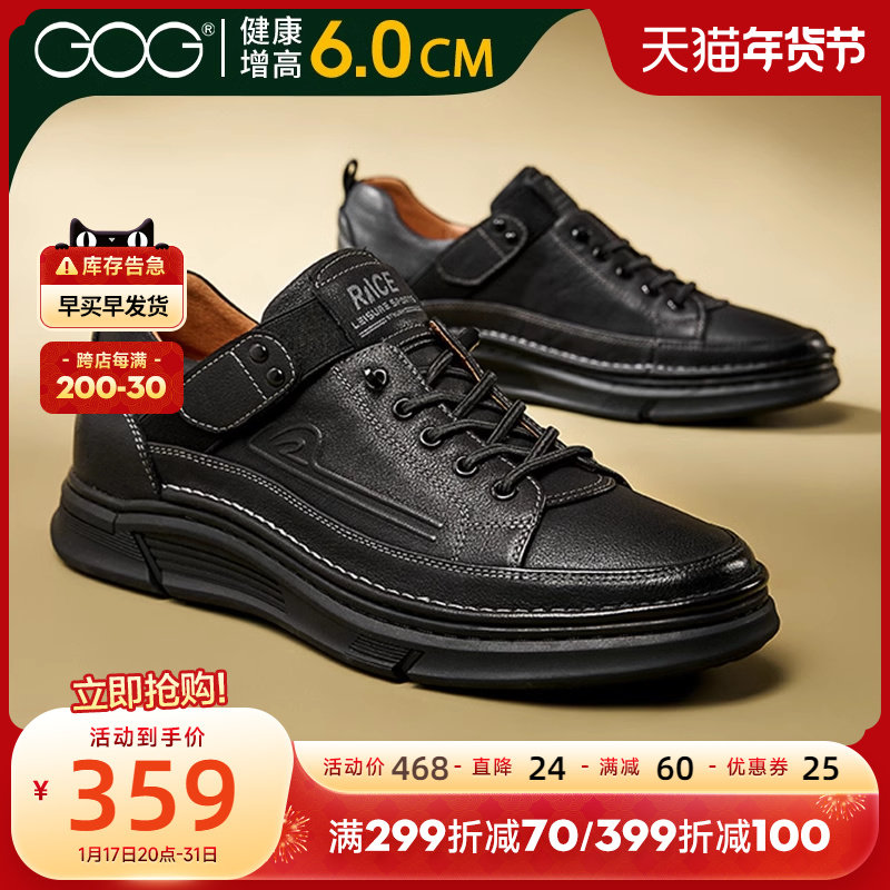 高哥增高鞋男士休闲皮鞋男真皮秋冬季新款圆头软底爸爸内增高男鞋