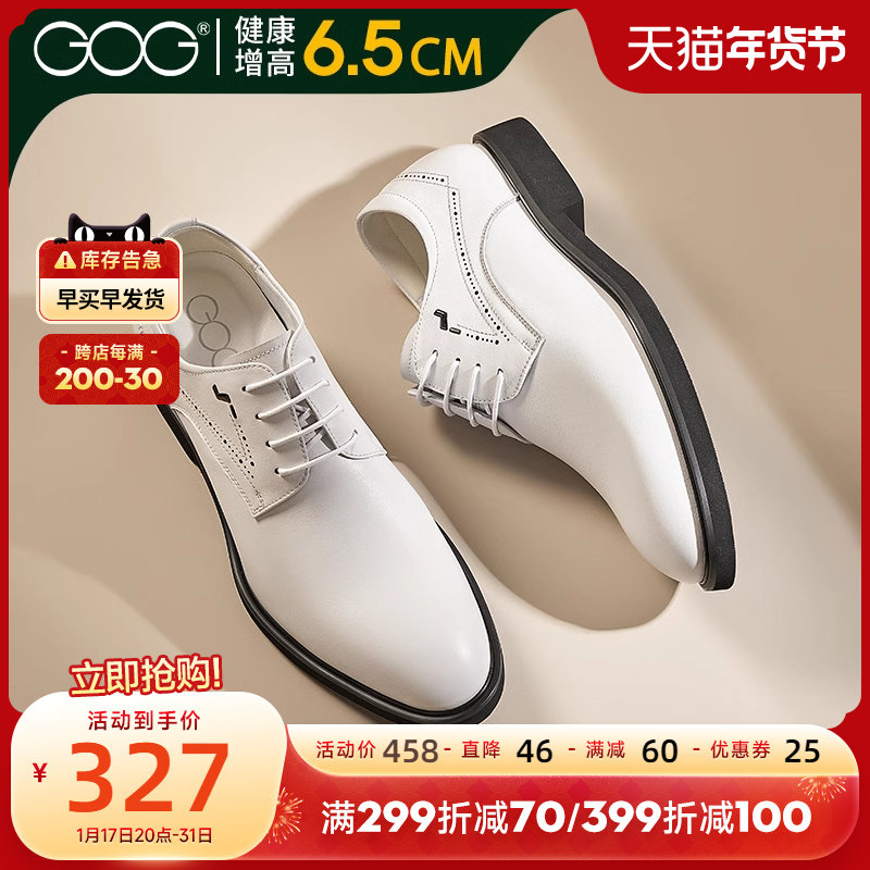 高哥内增高皮鞋白色西装鞋子真皮商务男鞋英伦正装婚鞋隐形增高鞋