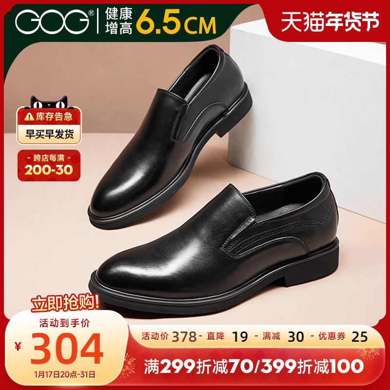 高哥增高皮鞋真皮商务正装男鞋一脚蹬懒人鞋子内增高新郎套脚皮鞋