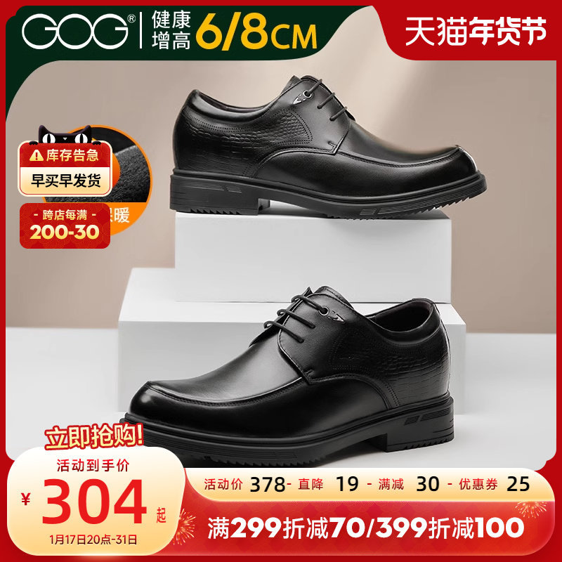 高哥增高鞋男6cm秋冬内增高皮鞋男士8cm真皮商务正装结婚加绒男鞋