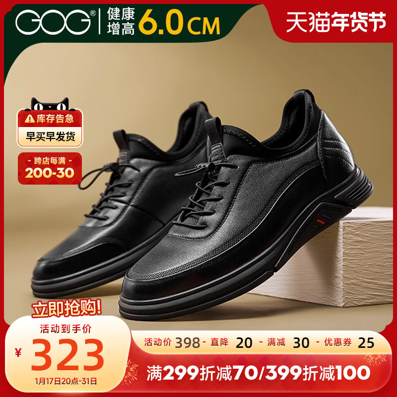 高哥内增高男鞋6cm秋冬季休闲皮鞋男士真皮商务增高鞋男加绒软底