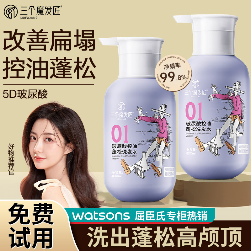 三个魔发匠玻尿酸控油蓬松洗发水露去屑止痒洗头膏正品官方旗舰店