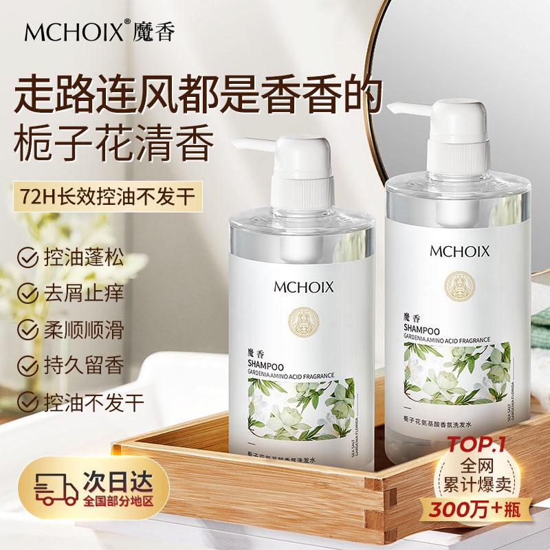 魔香栀子花氨基酸香氛洗发水官方旗舰店修护控油去屑蓬松温和净爽