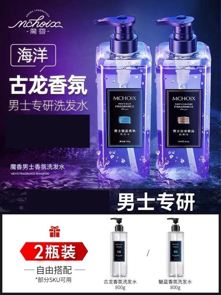 魔香古龙香水洗发水男士专用去屑止痒持久留香除螨控油沐浴露套装