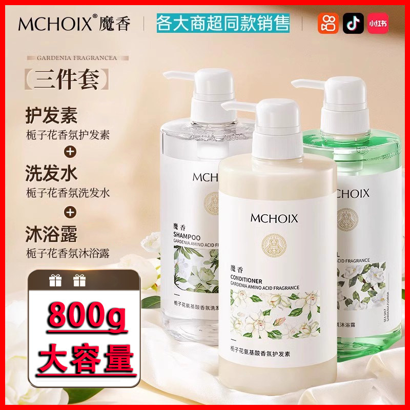 800ml魔香栀子花氨基酸香氛洗发水沐浴露去屑止痒控油持久留香