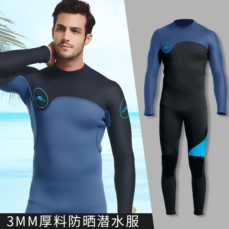 鲨巴特加厚3MM保暖长袖连体潜水服男防寒2MM短袖冲浪浮潜冬游泳衣