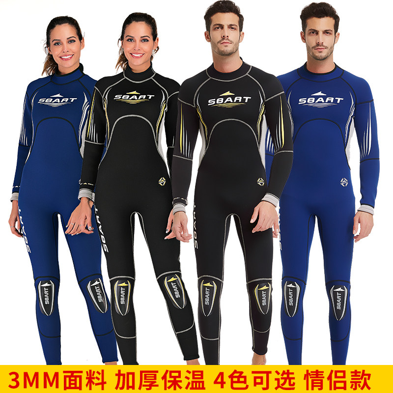 鲨巴特3MM加厚情侣连体潜水服男浮潜冲浪冬泳衣女深潜防晒防水母