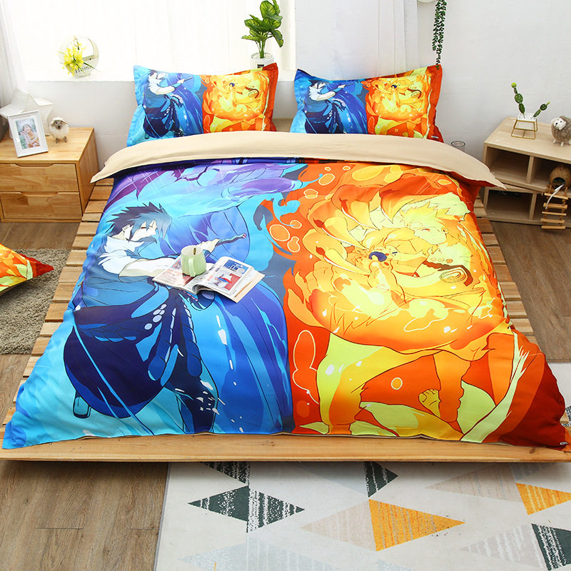 火影忍者学生三件套床上用品鸣人被套被罩卡通动漫床单四件套宿舍