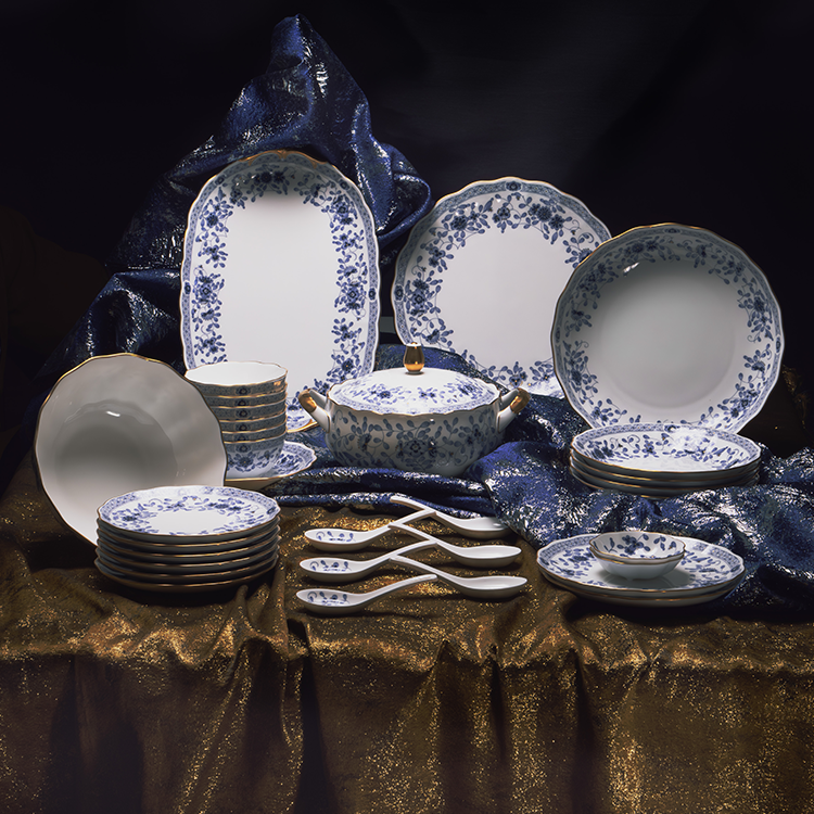 日本NARUMI鸣海Anatolia Blue系列4人份中餐套装(16头)骨瓷餐具