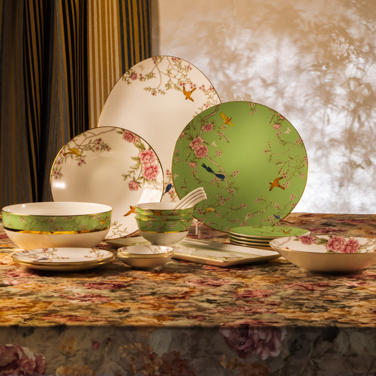 NARUMI/鸣海 QUEEN'S GARDEN(绿)系列 4人份中餐组(20头)骨瓷餐具