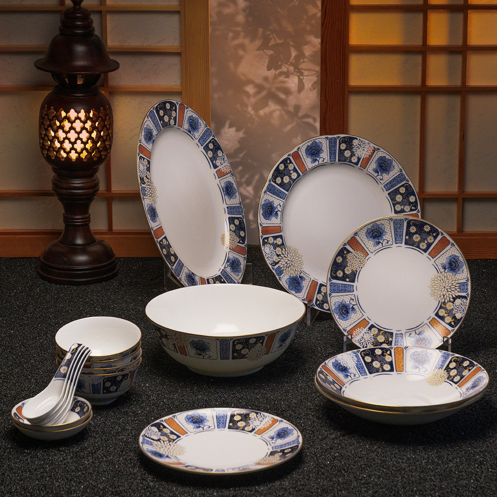 日本NARUMI/鸣海KIKKA伊万里4人份中餐组(16头)骨瓷釉中彩餐具